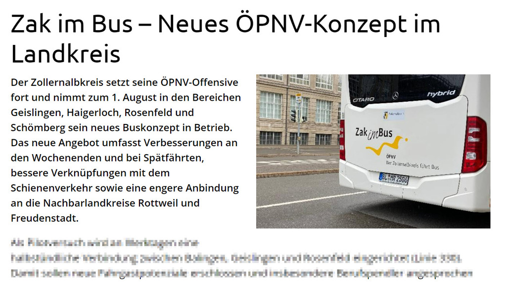 mehrDer Zollernalbkreis investiert in den Öffentlichen Nahverkehr. Davon profitiert auch der gewerbepark Binsdorf. Mehr ...