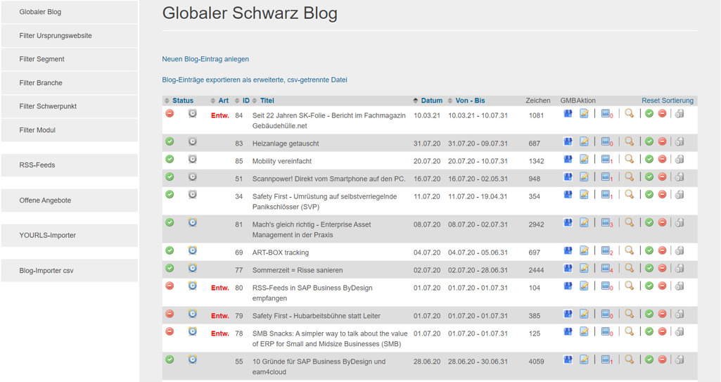mehrIn diesem fall ist Masse tatsächlich gleich Klasse. Denn wir haben eine weitere Funktion in unserem Blog-Tool in Betrieb genommen: Die Massenpflege. Jetzt geht es schnell und einfach viele Blog-Artikel mit bestimmten Merkmalen nachzupflegen. Das sorgt für hohe Datenqualität.