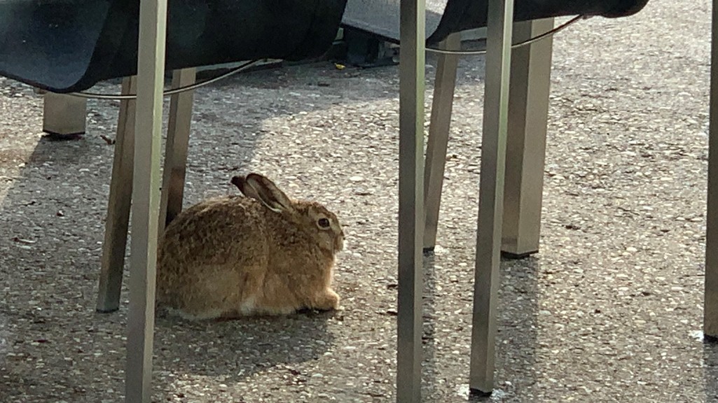 mehrHeute hatten wir einen netten Besucher im Gewerbepark Binsdorf. Der Hase hat es sich unter den Gartenstühlen bequem gemacht und die Sonne genossen. Hier hat er auch Schutz vor den Raubvögeln gefunden die hier ihre Kreise ziehen.