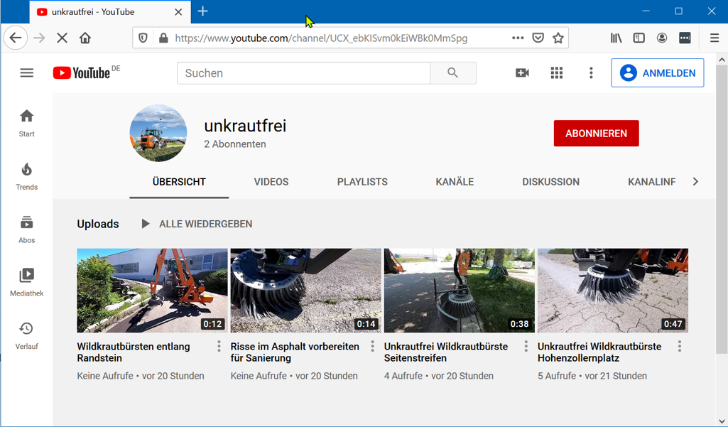 mehrUnkrautfrei hat einen eigenen Youtube-Kanal bekommen. Hauptziel des Kanals ist es Videos bereit zustellen. Vlogs im stil von YouTubern wie Bibi und JP Performance sind nicht geplant. Und trotzdem: "Wenn Dir das Video gefallen hat, dann lass uns einen Like da und abonnier unseren Kanal."