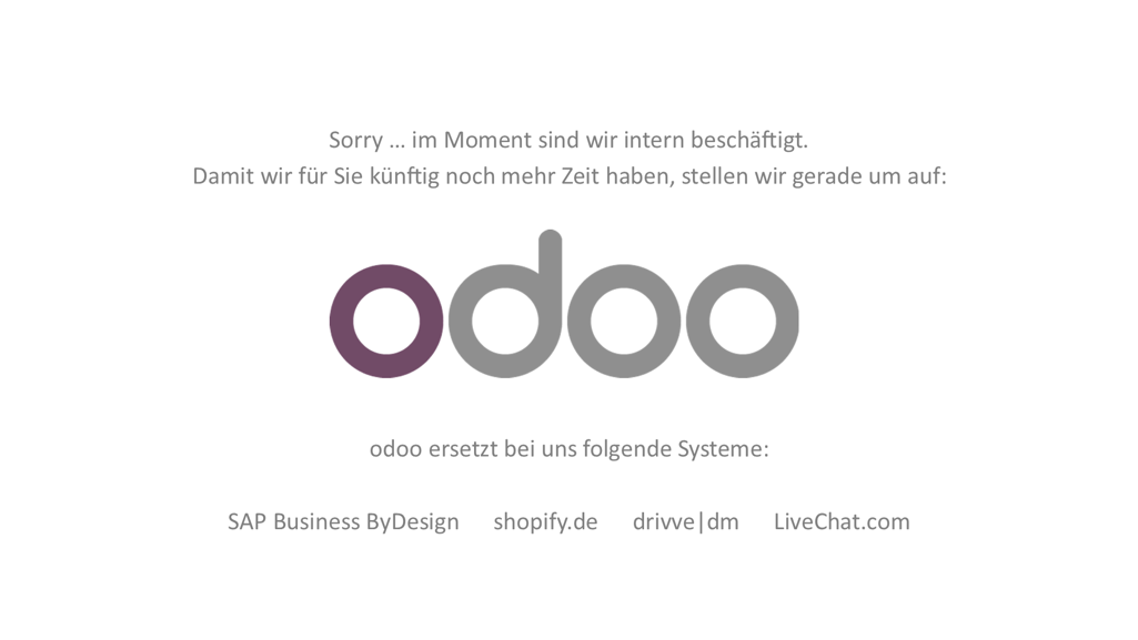 Vor wenigen Tagen haben wir mit der Umstellung begonnen. Ab Januar nutzt die Unternehmensgruppe Schwarz Odoo. Auf Odoo läuft (fast) alles - von der Website bis zur Bilanz. Deshalb werden wir SAP Business ByDesign, Shopify, ...